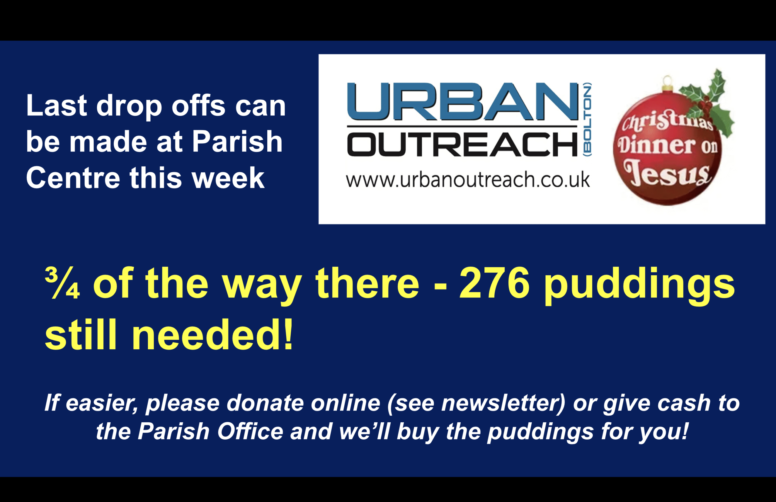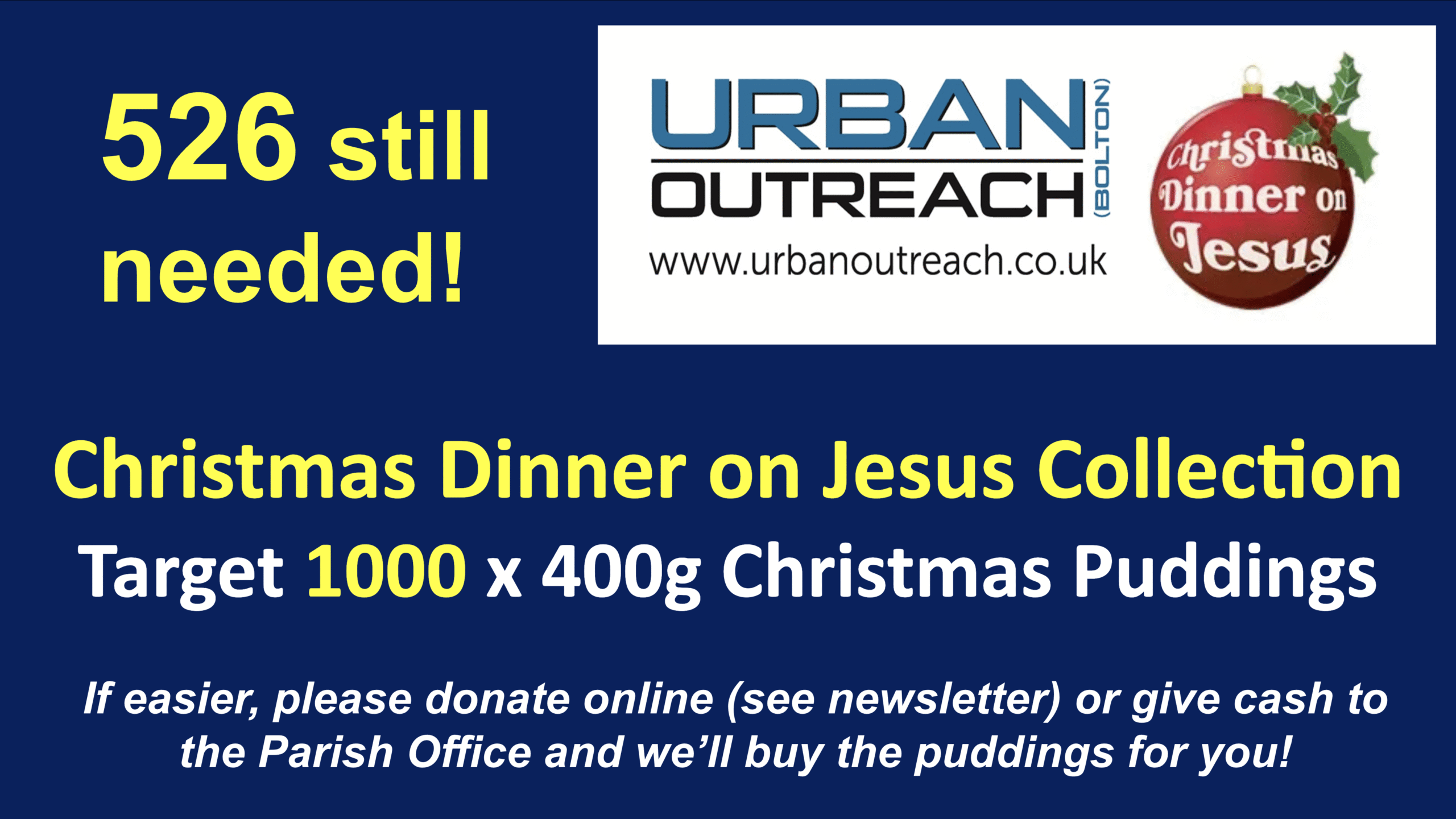 You can start buying puddings with your weekly shop (some stores sell them quite cheaply) and bring them to church, or you could donate money towards the purchase of more Christmas puddings. If you’d like to donate click here.