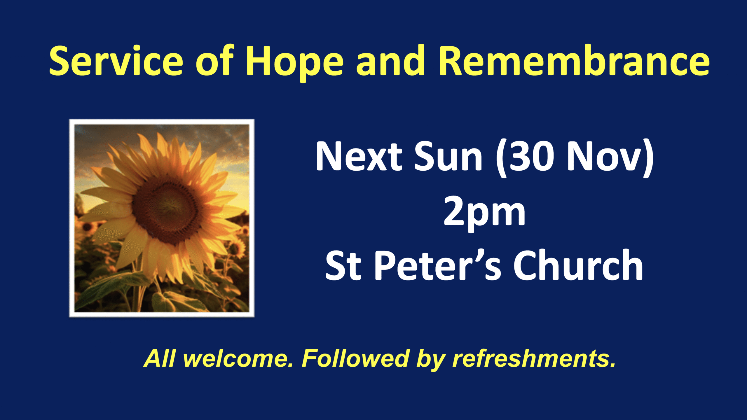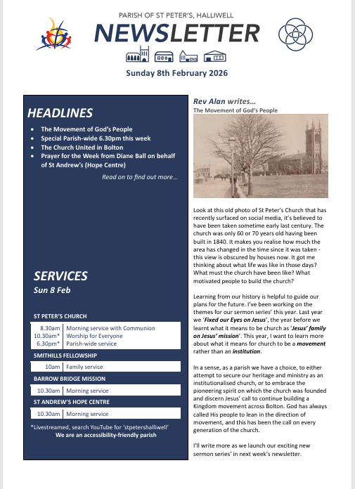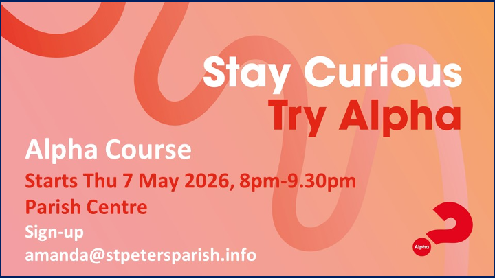 We meet every Sunday at 6.30pm in St. Peter’s Church and the reading and talk from this service is available on our YouTube channel.