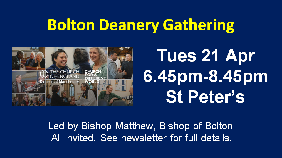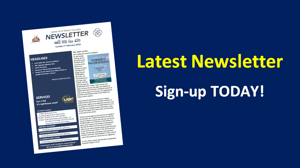 At St. Peter’s Halliwell we work hard to maintain a safe environment for all. We are committed to implementing the House of Bishops’ safeguarding policies and good practice guidance.